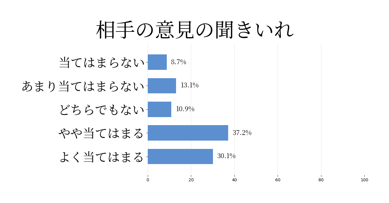自分が正しいと思う意見を持っている場面でも、相手の意見を聞き入れ、違いを認めることができる。