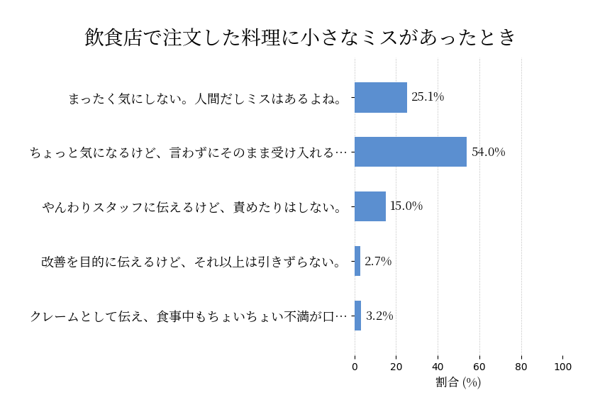 注文した料理が「ぬるい」「遅い」「ちょっと違う」など、小さなミスがあったとき。