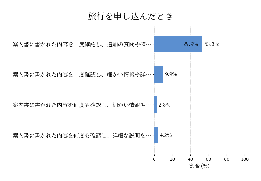 旅行会社で旅行を申し込んだとします。旅行会社からの案内書には、旅行の詳細が書かれていますがさらに「どのような場所を訪れるのか」や「何が含まれているのか」など、細かい情報を確認する?