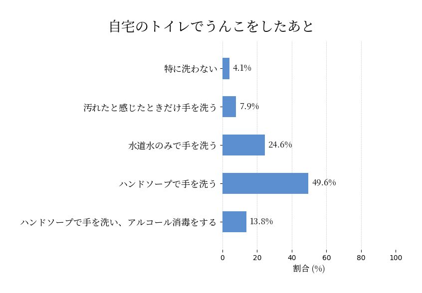 自宅で1人でいるときにトイレで大きい方をしたあとどれくらい手を洗うか。