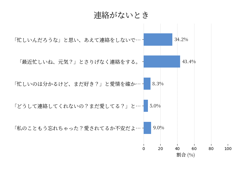恋人が最近忙しくて、あまり一緒に過ごす時間が取れていません。普段は連絡もマメな恋人がここ数日、あまり連絡をしてこない時、あなたはどうしますか?