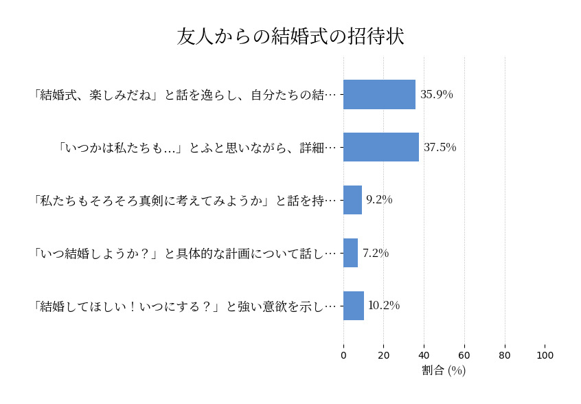 恋人と家にいるとき友人からの結婚式の招待状が届きました。この状況で、恋人との将来についてどのように考え、話を進めますか?
