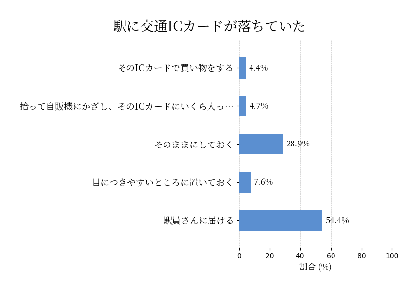 人気のない駅のホームで電車を待っている際、交通ICカードが落ちているのを見つけた時の対応。