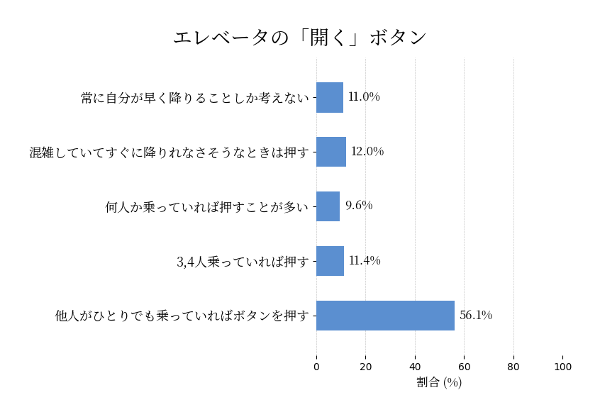 エレベーターの操作パネル付近に乗っていて全員(他人)が同じ階で降りるであろうとき、何人乗っていれば「開く」ボタンを押して待つ?