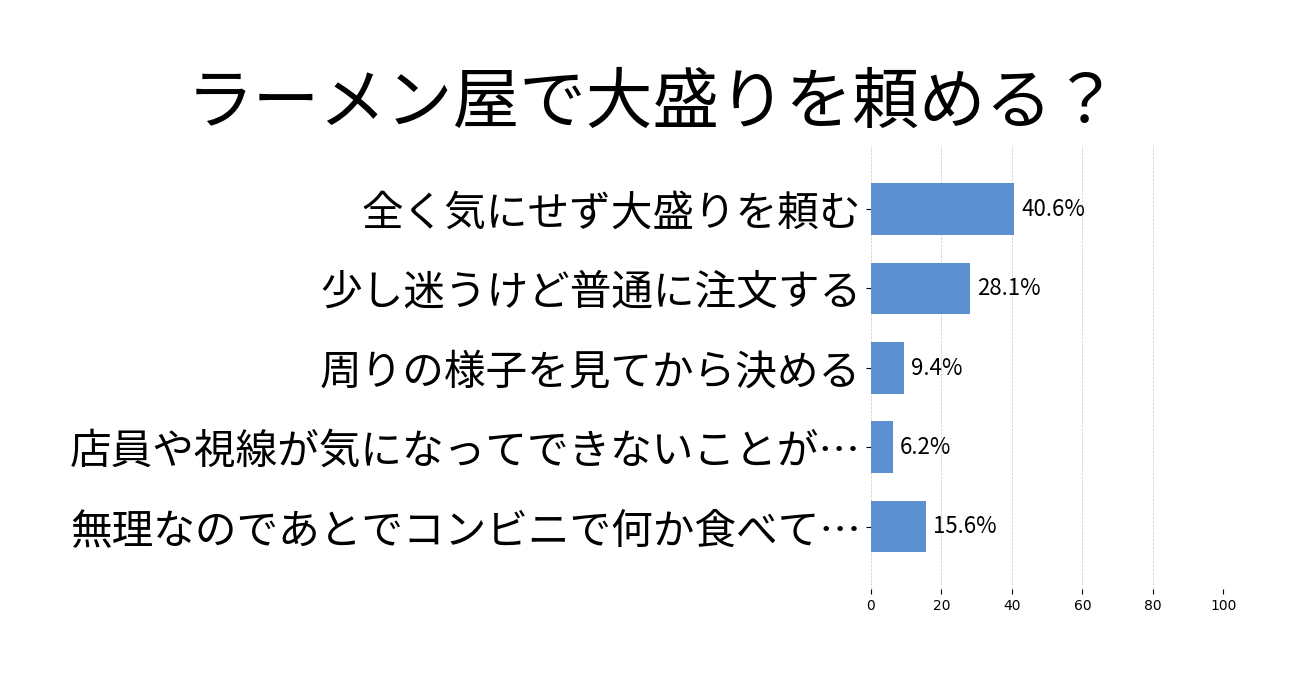 お腹はすごく空いてるのに、ラーメン屋で「大盛りください」と言うのがなんとなく恥ずかしくて我慢したことはある?