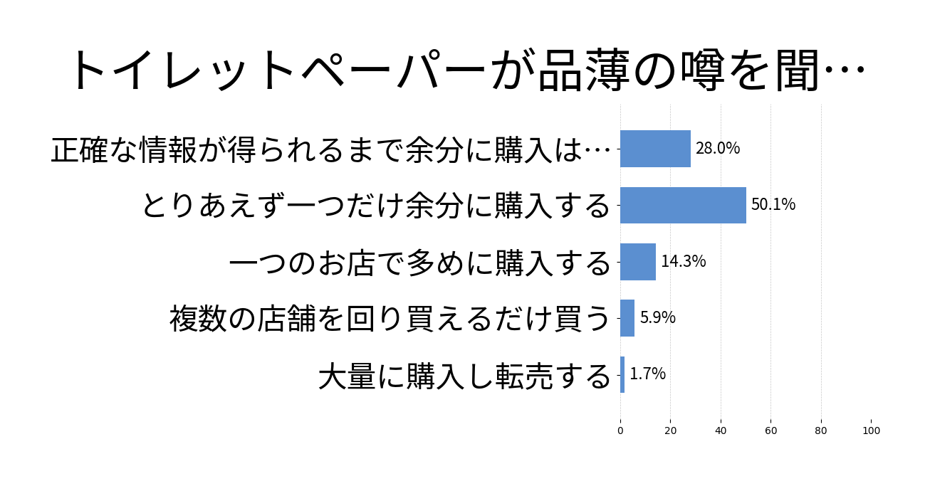 SNS等でトイレットペーパーが店頭から消える、又は品薄になると噂が広がったときどうする?もちろん噂なので正確な情報なのか確認が取れていない。