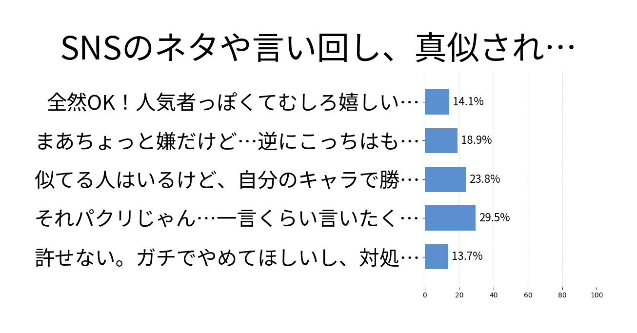 ずっと自分らしく投稿してきたSNSで、最近なんか他の人が自分とそっくりな内容やノリを使い始めた。しかも結構ウケてる…。さて、あなたならどうする?