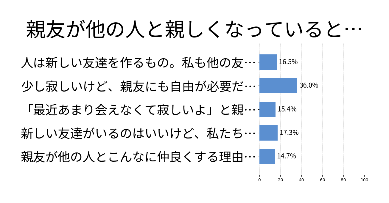 長年の親友が最近、他の人と特に親しく過ごしていることに気づきました。以前はあなたがその親友の一番の相談相手だったのに、今ではその新しい友達と多くの時間を共有しています。この変化に対して、あなたはどう感じ、どう行動しますか?