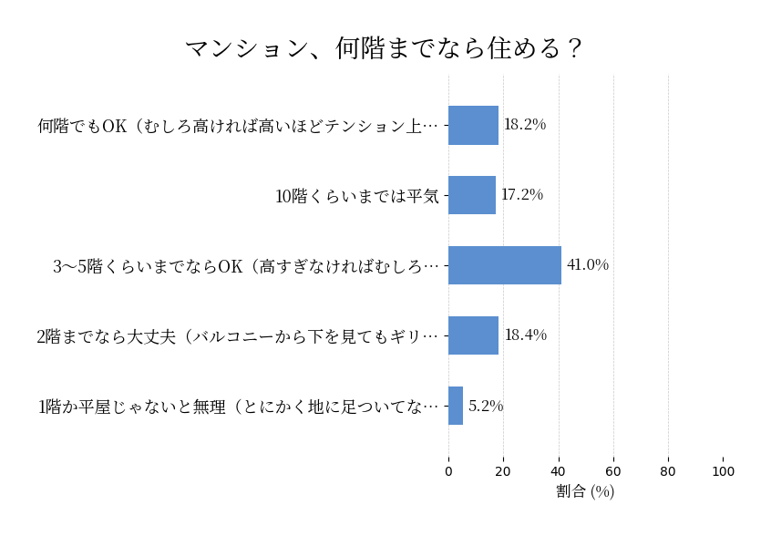 最近の高層マンションって、下が見えるガラス張りのバルコニーとか使ってくるじゃん。「眺めいいでしょ?」じゃないんよ、「罰ゲームかな?」ってなる。あんなもん毎日スカイダイビングの助走やん。高層階ってつまり、エレベーターのボタン押すだけでちょっと命に触れてる感あるのよ。