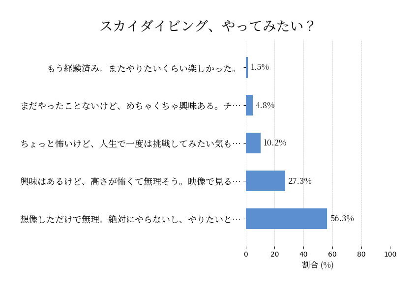 飛行機から地上めがけてダイブ。空を落ちる感覚なんて、普通はなかなか味わえない。