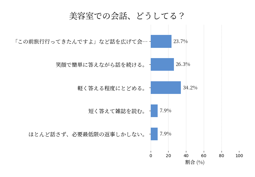 久しぶりに美容室へ行ったあなた。カット中、美容師が「最近どうですか?」と話しかけてきた。あなたはどう対応しますか?