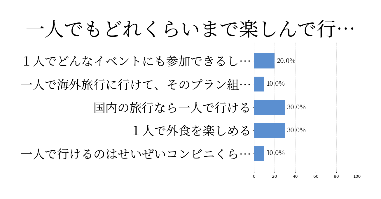 一緒に行く友達の都合がつかないときなど一人で行動してどれくらいまで楽しむことが出来きますか?
