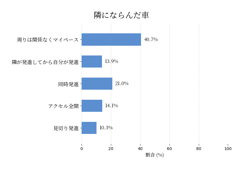 二車線以上ある道路で信号待ちをしていて、青になるとともにどう発進したいか?