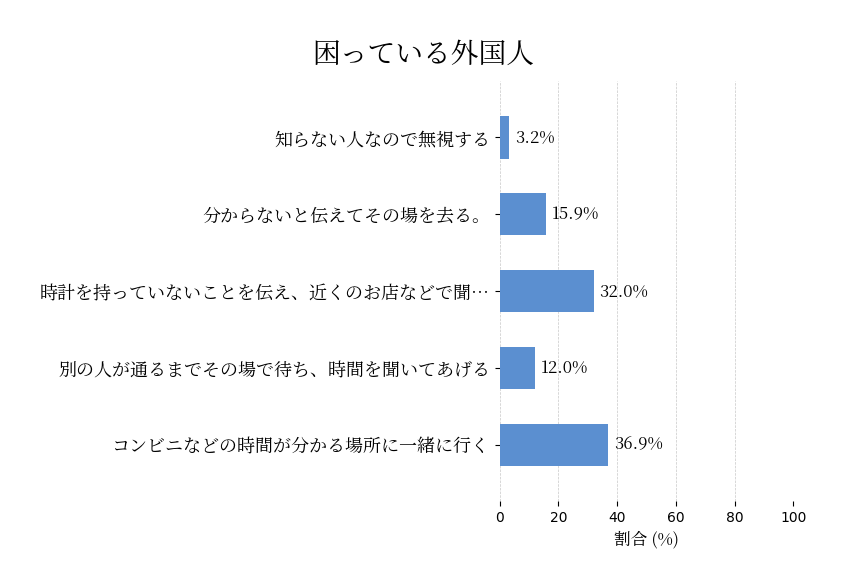 カタコトの知らない外国人から現在の時間を聞かれましたが、時間が分かるものを持ち合わせていない時のあなたの対応