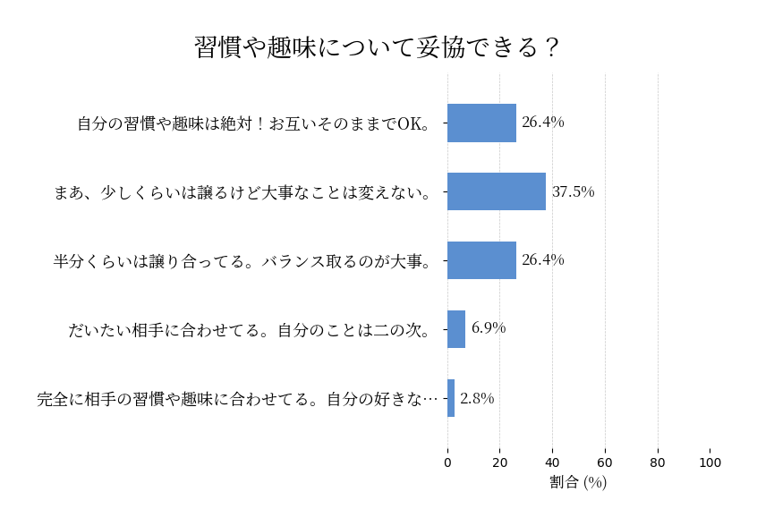同棲するときお互いの習慣や趣味はどれくらい妥協できる?全然妥協しないのか、それとも全部相手に合わせちゃう?