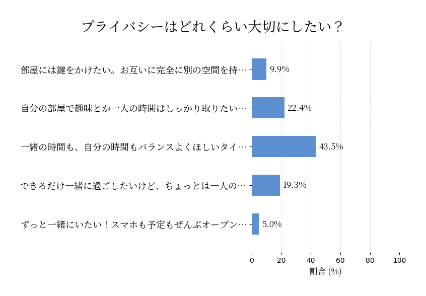 恋人と一緒に住むとき、どれくらい自分の時間や空間がほしい?ずっと一緒がいい?それとも一人の時間もちゃんと取りたい?