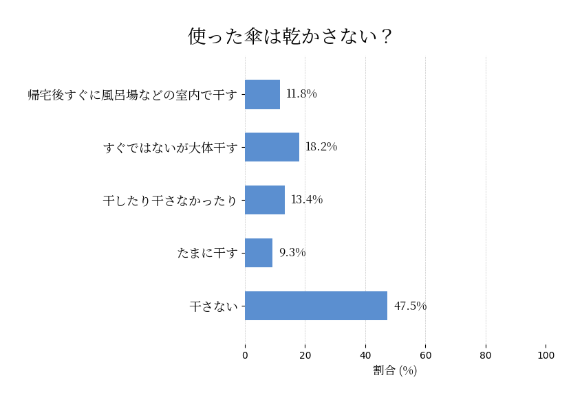 帰宅時に使用した雨傘は干してちゃんと乾かしますか?