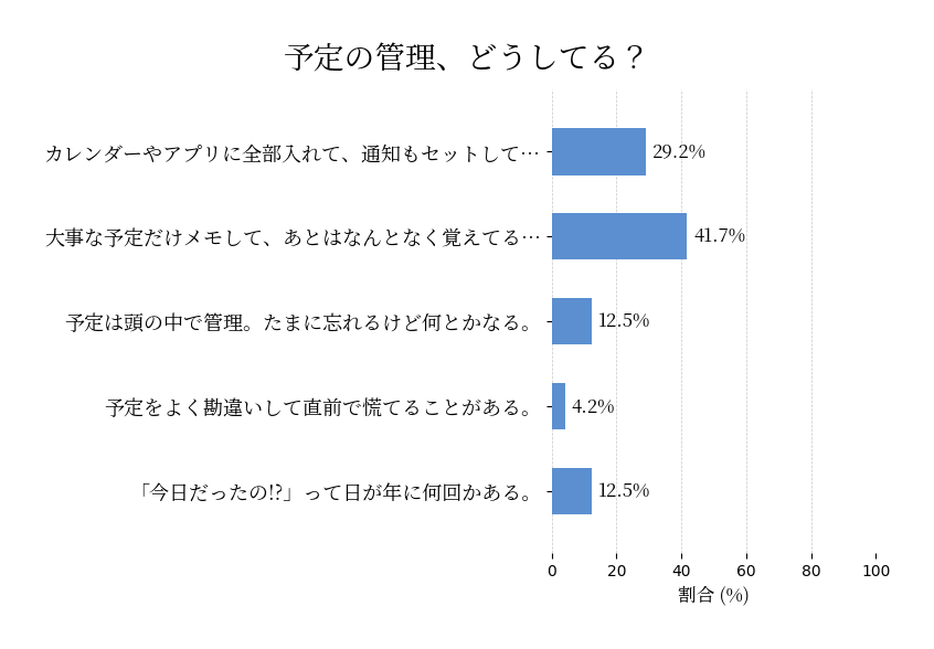 友達との約束や病院、支払いの期限など、予定をどんなふうに管理していますか?