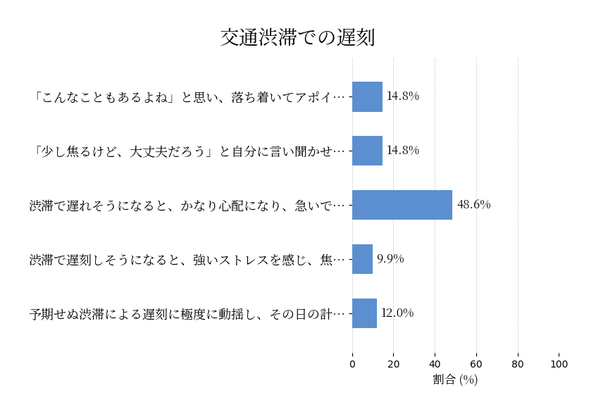 大切なアポイントメントのために出発したあなたですが、予想外の交通渋滞に巻き込まれました。時間通りに着くのが難しくなりそうです。このような状況で、どう対応しますか?