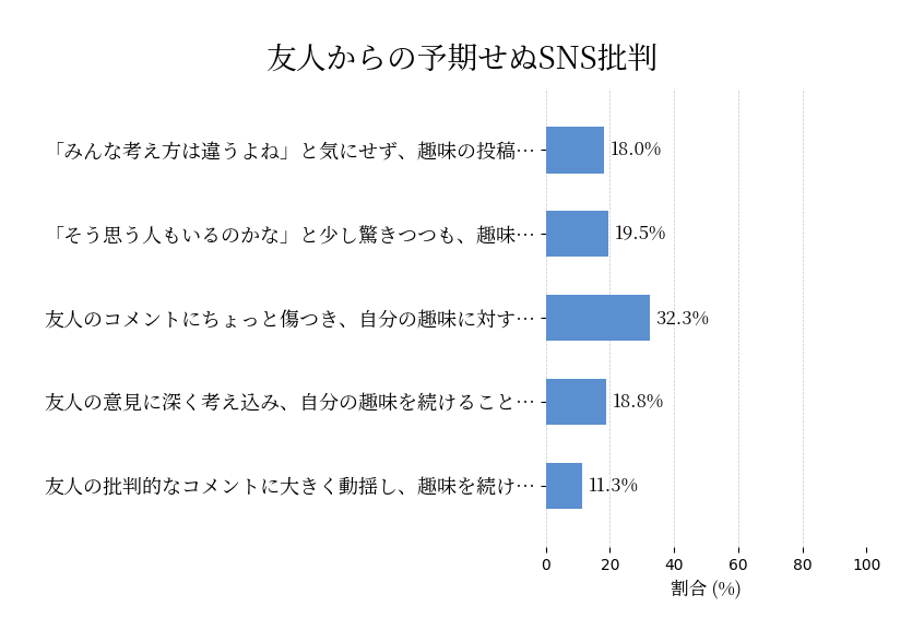 あなたは最近、趣味として始めたアクティビティについて、楽しみながらSNSに投稿していました。ところが、いつも支えてくれるはずの親しい友人から、「もっと他のことに時間を使った方がいいんじゃない?」という意外な批判的なコメントを受けました。この友人のコメントにどう反応しますか?