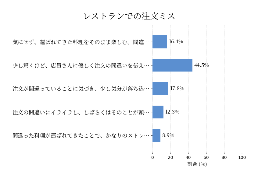 友達と楽しみにしていた新しいレストランでの食事中、あなたが注文した料理が間違って運ばれてきました。本来注文した料理とはまったく違うものです。店員さんにはまだ気づかれていないようです。この状況で、どのように対処しますか?
