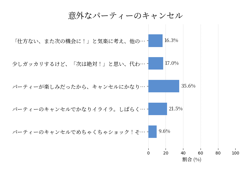 ずっと楽しみにしていた週末のパーティーが、主催者からの突然の連絡でキャンセルになりました。あなたはこのパーティーのために特別な準備をしていて、友人たちとの再会を心待ちにしていました。この急な変更にどう反応する?