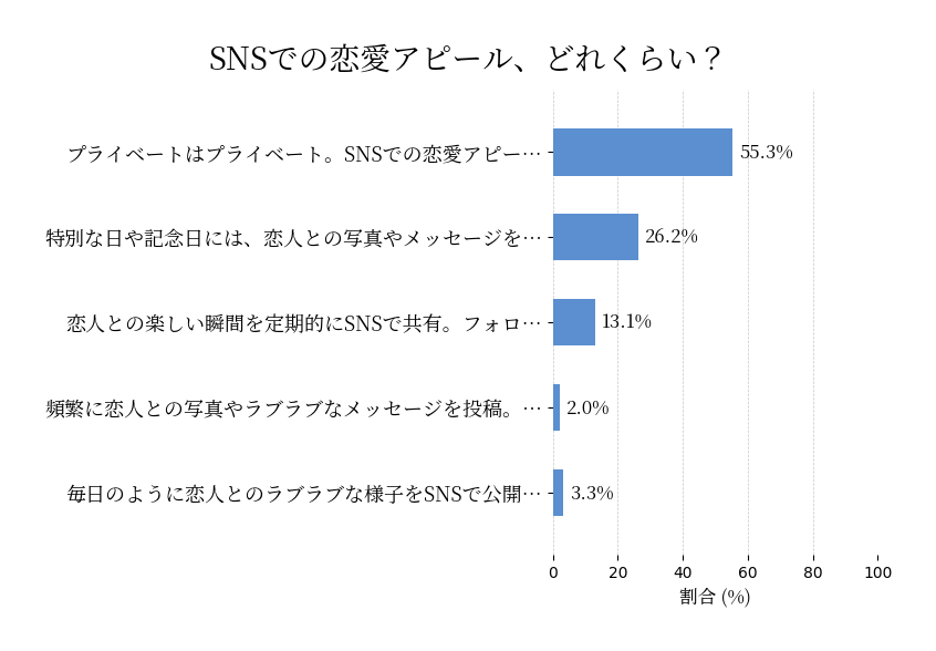 SNSで、あなたと恋人の関係をどのように表現しますか? 写真やメッセージでのラブラブアピール、どの程度行っていますか?