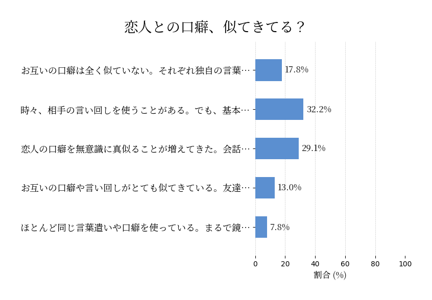 あなたと恋人は、お互いの口癖や話し方が似てきていますか? どの程度お互いの言葉遣いが影響し合っていると感じますか?