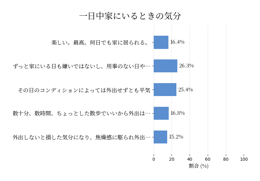 一日中、家にいるとどんな気分になりますか?外出したくなりますか?