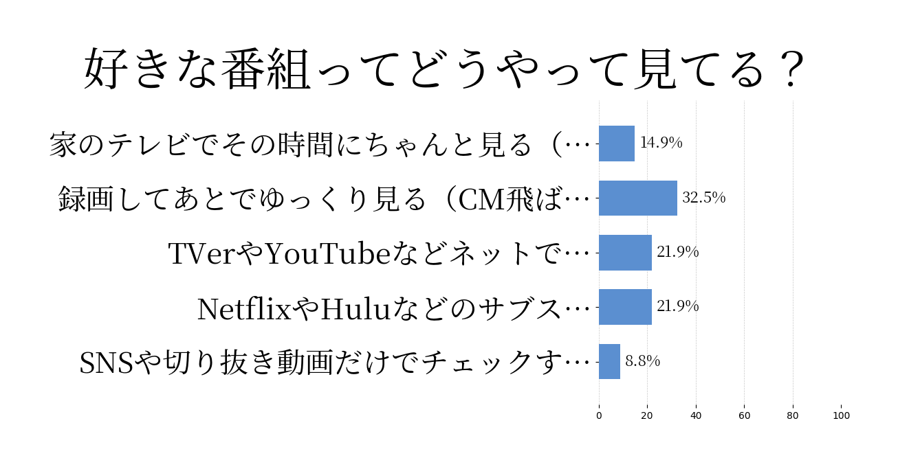 昔は「この時間にテレビの前に座らなきゃ」って世界だったのに、今はもう録画や配信でみんな好き勝手に見てる。リアタイに命かけてた時代が、嘘みたいだ。