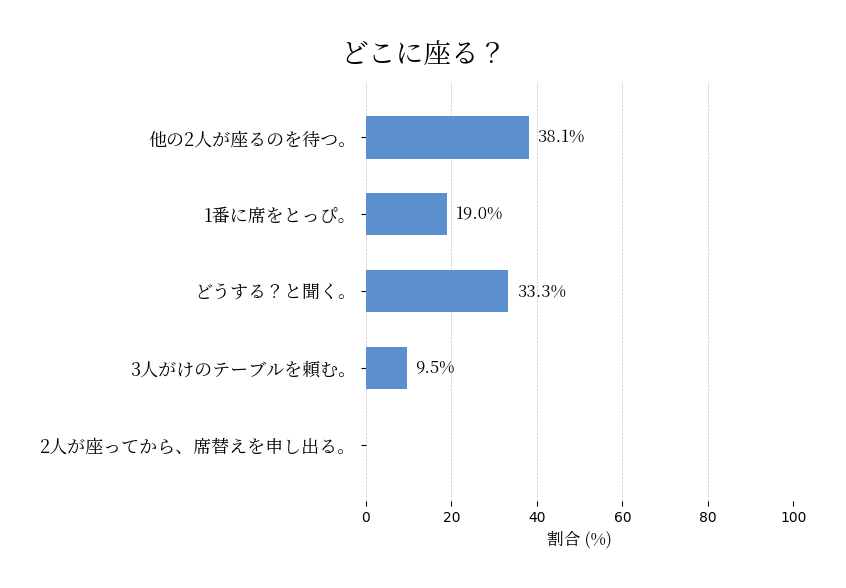 3人で食事に来ました。案内されたのは四人掛けのテーブル。あなたはどうしますか?