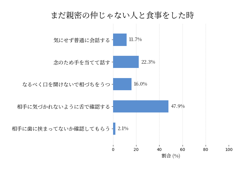 昼食あと、談笑中に笑った友人の歯に海苔がついているのを見た時の反応
