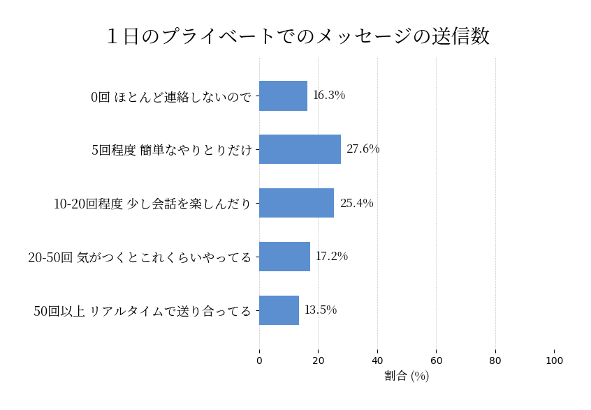 LINEやメール、メッセージアプリなど1日プライベートで何人くらいとやりとりしますか?グループチャットは1人として数えください。
