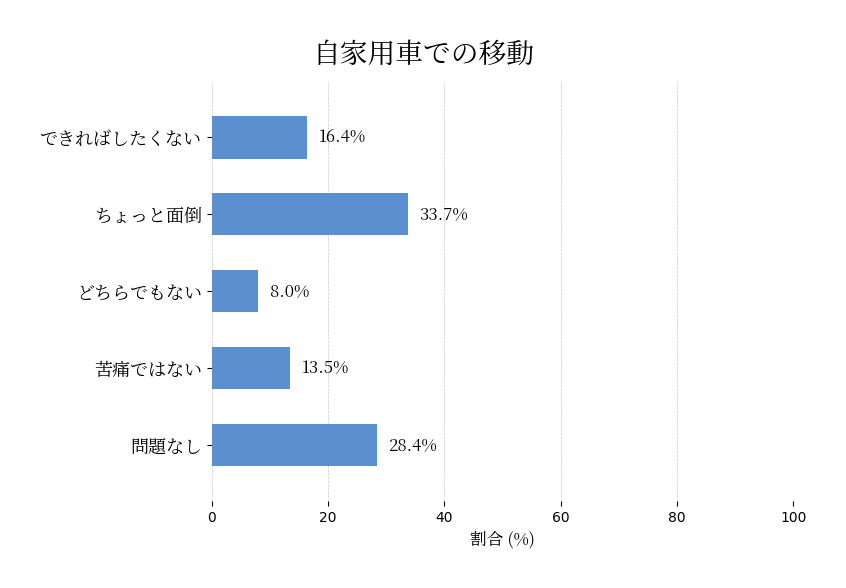 どこに行くにも自家用車を運転して移動することが面倒だと感じるかどうか