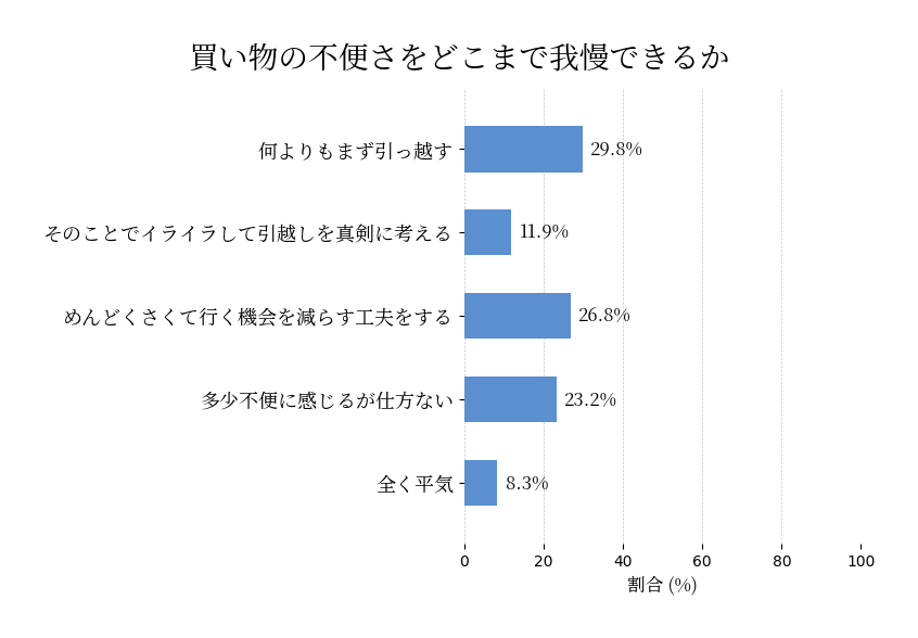 日用品を買えるお店が自宅から車で1時間離れていたらどうですか?