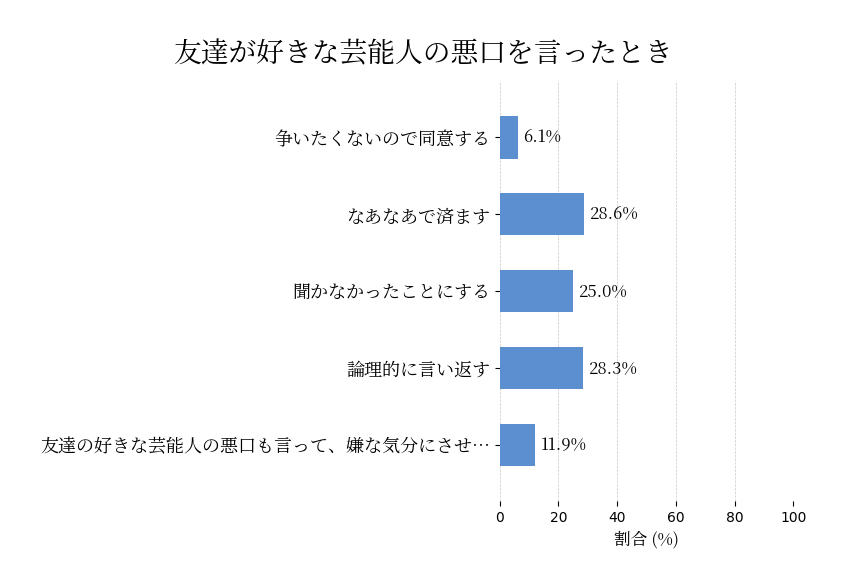 会社の同僚や友人など、今後も付き合いがある人たちと会話している中で、自分の好きなアニメやアイドルの話題が出てきた時にあなたはどのような行動を取るでしょうか?