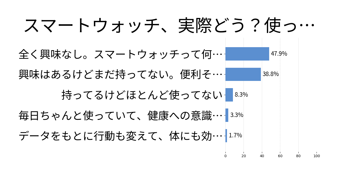 スマートウォッチってさ、みんな興味あるようでいて、実際使ってる人ほとんどいないのなんか笑えるよね。「え、そんなことまで測れんの?スゴ〜」って目を輝かせながら、買わないし、手首も空のまま。遠巻きに未来を眺めてる感じ。