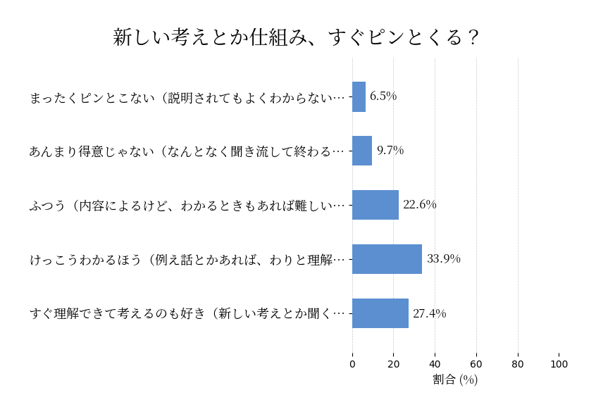 このアンケート結果見てると、やたらみんな「けっこうわかるほう」とか「すぐ理解できる」とか答えてて、それってちょっとピカソの絵を見て「なるほど、これは内面の葛藤だね」とか言っちゃう人たちと同じ匂いがする。ほんとはわかってなくても、わかってることにしたい、っていうあの謎の自信。わからんって言ったらセンスないと思われそうだから、なんとなくわかったフリをする。