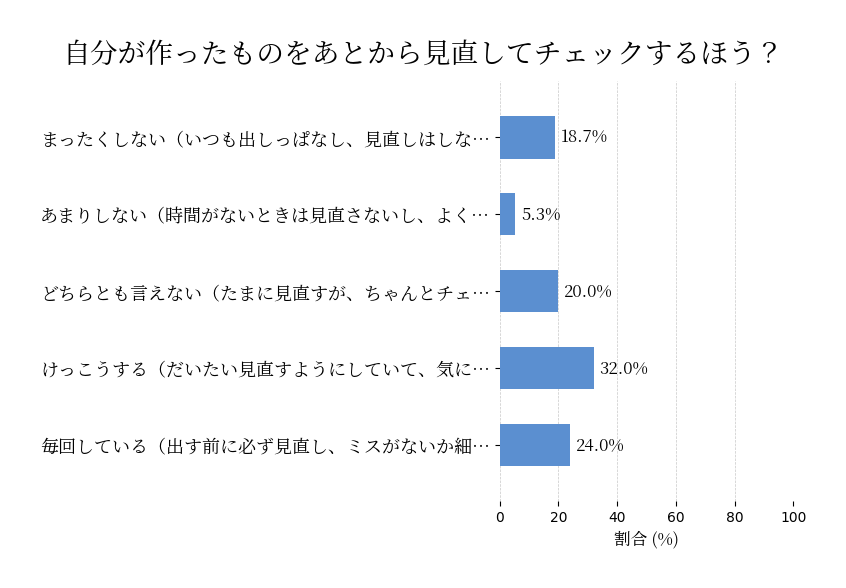 送信前の見直しね、俺はけっこうする方だと思うんよ。誤字がないかとか、変な言い回しになってないかとか、気になっちゃう。相手に失礼じゃないようにっていう建前もあるけど、たぶん根っこは優秀に見られたいだけなのかもしれん。