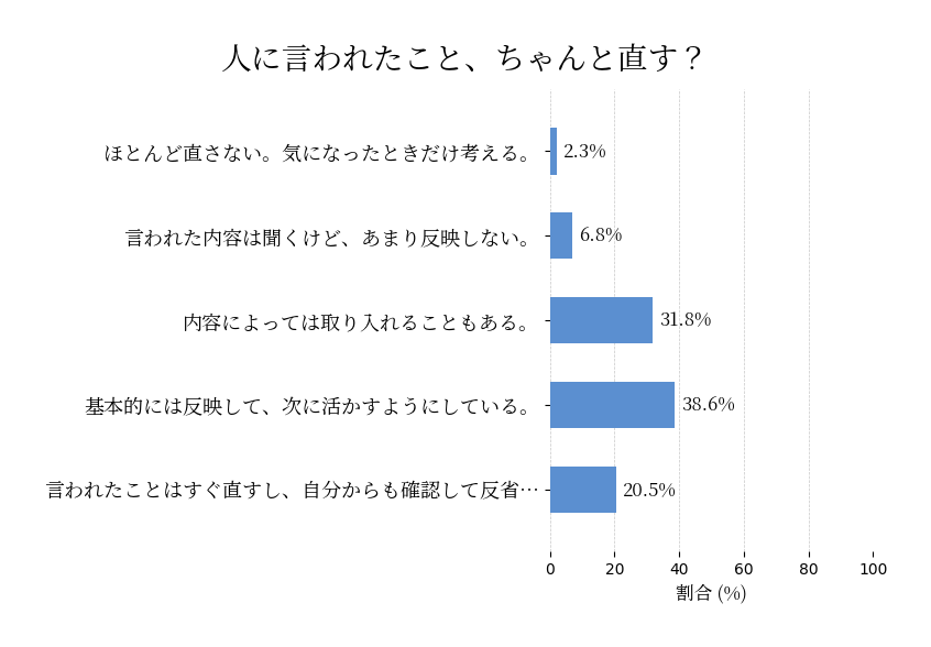 言われたこと?もちろん直しますよ。いや、直すしかないんですよね。怒られすぎて、もう反射で修正してる。指摘されると「ハイ直しますッ!」って口が先に動いてる。内容?まだ聞いてない。でもとりあえず謝って直しておけば丸く収まる。評価は?知らん。生き延びるためにやってる。