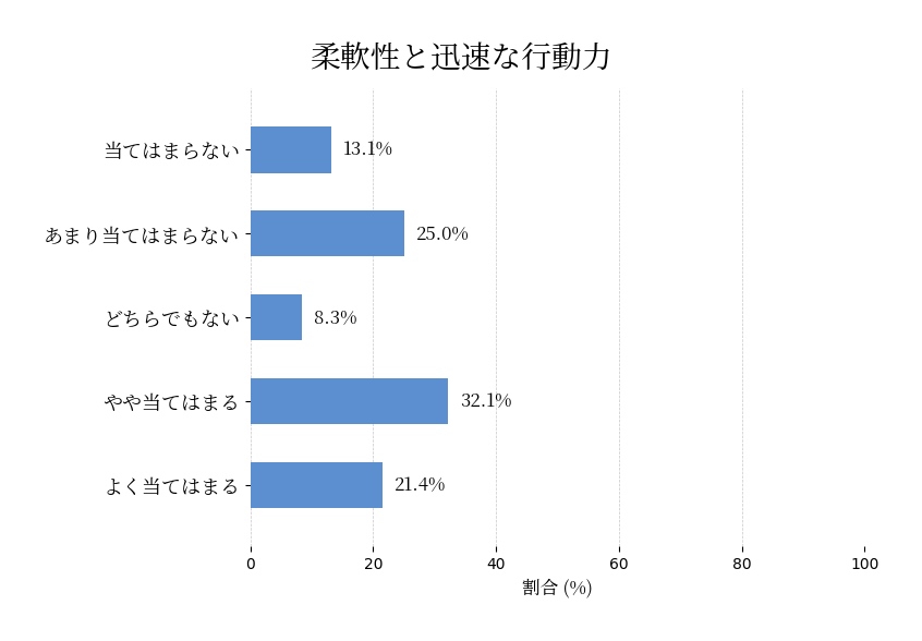 プロセスよりも結果に注力し、目標達成に向けて努力する。新しいプロジェクトに取り組んでいる際に、進め方を考えずにまずは目標の達成を目指す。