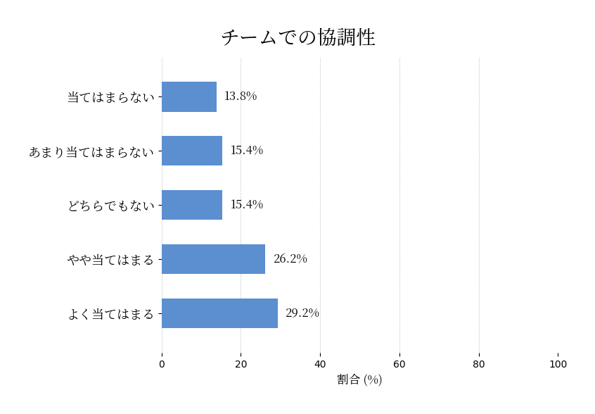 仕事のプロジェクトなどで、他のチームメンバーと円滑なコミュニケーションをとり、協力して目標を達成することができる
