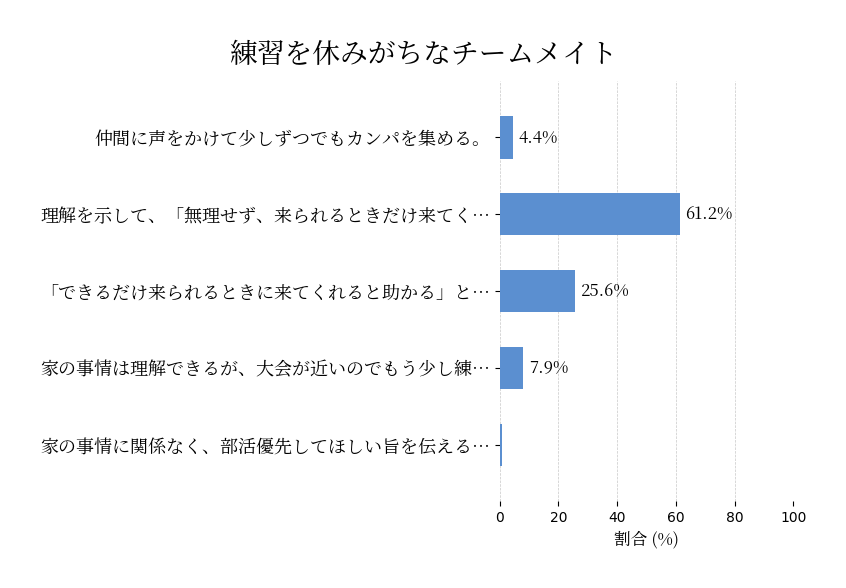で、少数派だけど「もうちょい練習来れん?」って交渉派もいる。こっちはまだリアル。現実と理想の間をうまく揺れてる感じ。「部活優先しろ!」って言っちゃうやつは、もう昭和の体育会の亡霊。いまだに根性論で生きてるのすごい。逆に会ってみたい。モラハラってよりホラーだよ。