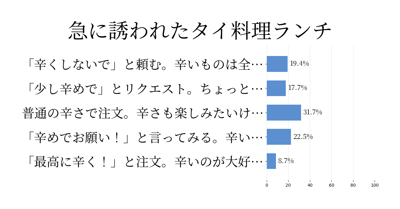 レストランでディナーを楽しんでいる時、ウェイターが「今日の特別メニューは非常に辛い料理です」と勧めてきた。あなたはどう反応する?