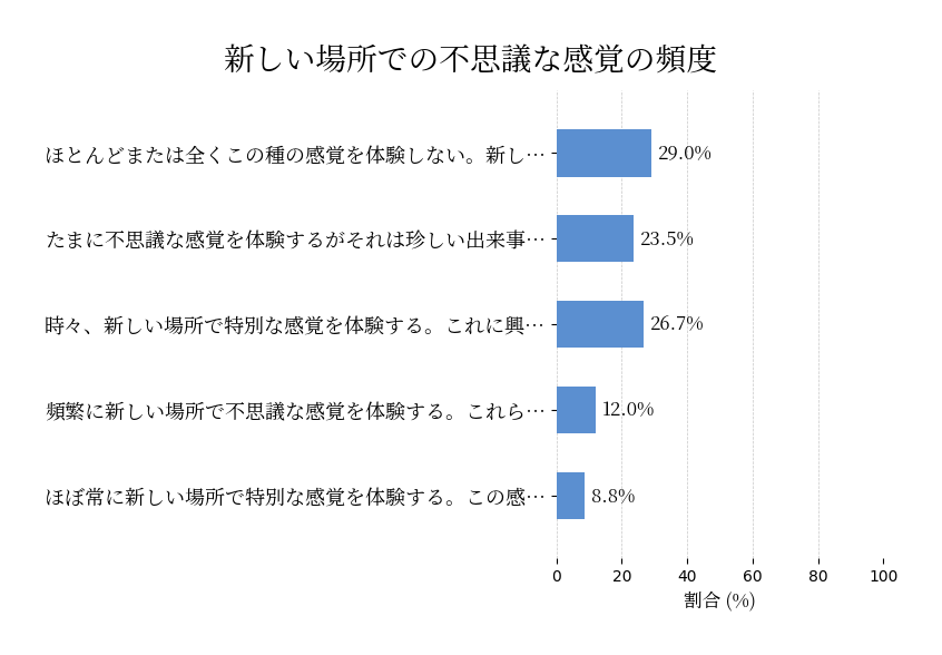 未知の場所や初めて訪れる町で「ここに以前来たことがある」と感じるような「デジャヴ」の体験をすることはどれくらいありますか?例えば、道路の曲がり角や特定の建物を見...