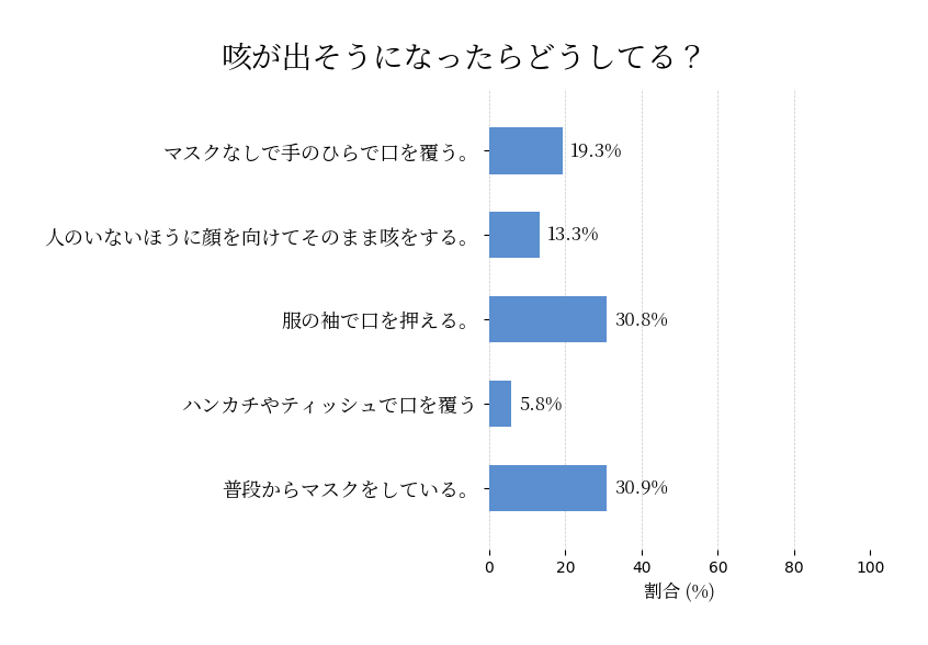 咳エチケットって、意外とみんなバリエーションあるよね。袖でガードする人もけっこういる。俺も正直それ派。ずっとマスクしたりハンカチ持ち歩くの面倒だし。