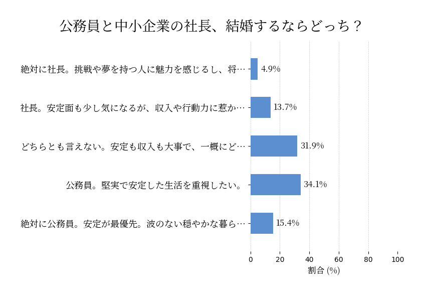 公務員と社長、どちらと結婚したいかと問われれば、たぶん私は答えを濁すと思う。けれどもし、夜の帳が静かに降りて、誰もいない小道をふたりで歩くような時間が与えられたなら、そのとき、私はこう答えるかもしれない――「肩書きでは選べない」と。