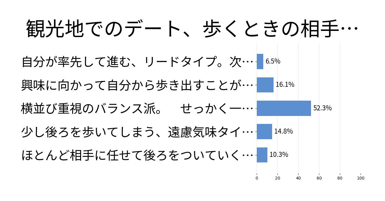 観光地でのデートって、「歩く」って行為にこんなにも個性が出るんだって改めて思う。なんかもう性格診断が足音でされてるレベル。先頭グイグイ行く人は、多分人生もGoogleマップも自分で握ってたいタイプ。同行者というより、もはやナビが人間になったような存在。