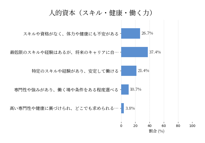 お金や資産、収入の安定性など、生活や将来への安心を支える力の状況に近いものを選んでください。