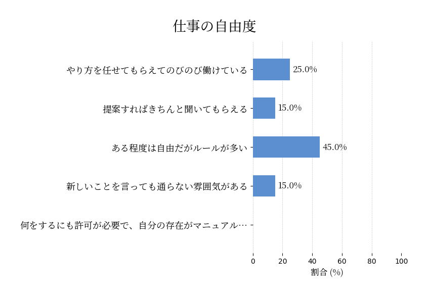 今の仕事では、自分の判断やアイデアをどの程度反映できていますか?